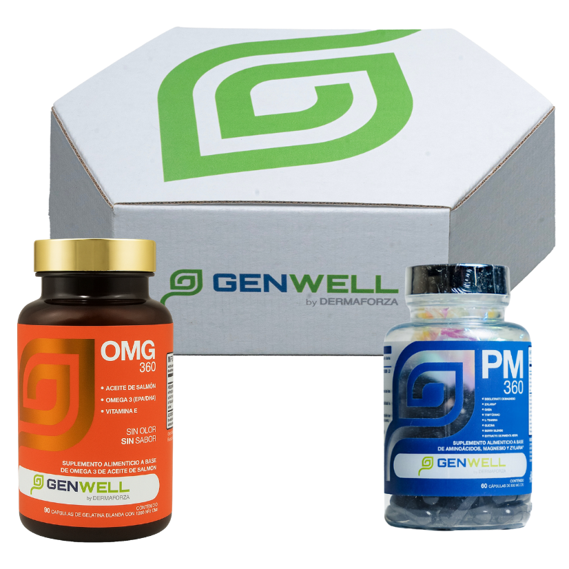 Kit para descansar mejor y sentirte más ligero. Combina PM 360 para un sueño profundo y recuperación, con OMG 360 (Omega 3 concentrado) para apoyo antiinflamatorio y salud cardiovascular. Ideal para un bienestar integral día a día.
