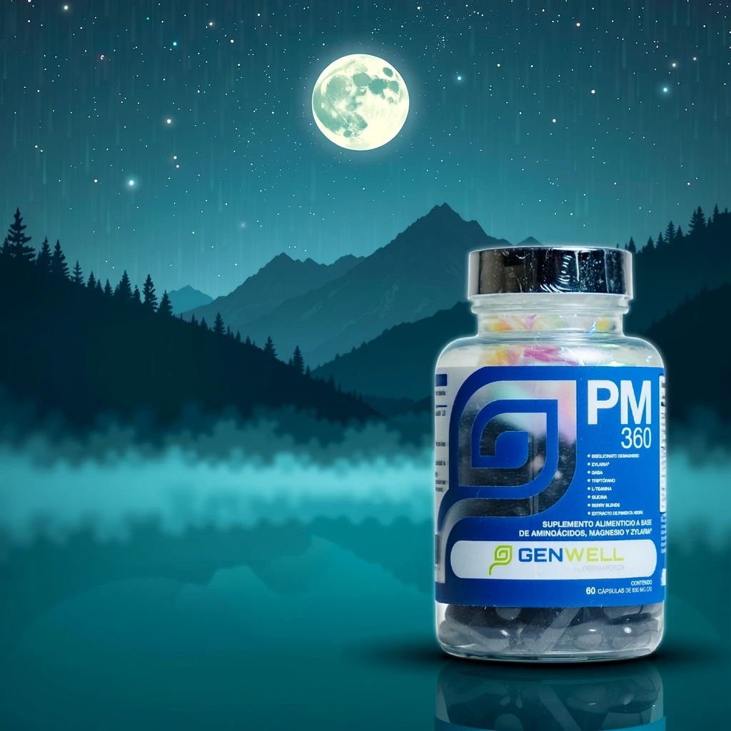 PM 360 es un suplemento alimenticio que combina aminoácidos, magnesio y Zylaria, la cual es una mezcla patentada para promover un descanso reparador y aliviar el estrés sin crear dependencia. Es suplemento diseñado para personas que buscan mejorar su bienestar general, reducir el estrés, mejorar la calidad del sueño y apoyar la salud cognitiva. Con ingredientes de alta calidad como Zylaria®, Bisglicinato de Magnesio, GABA, Glicina, L-Triptófano y L-Teanina.
