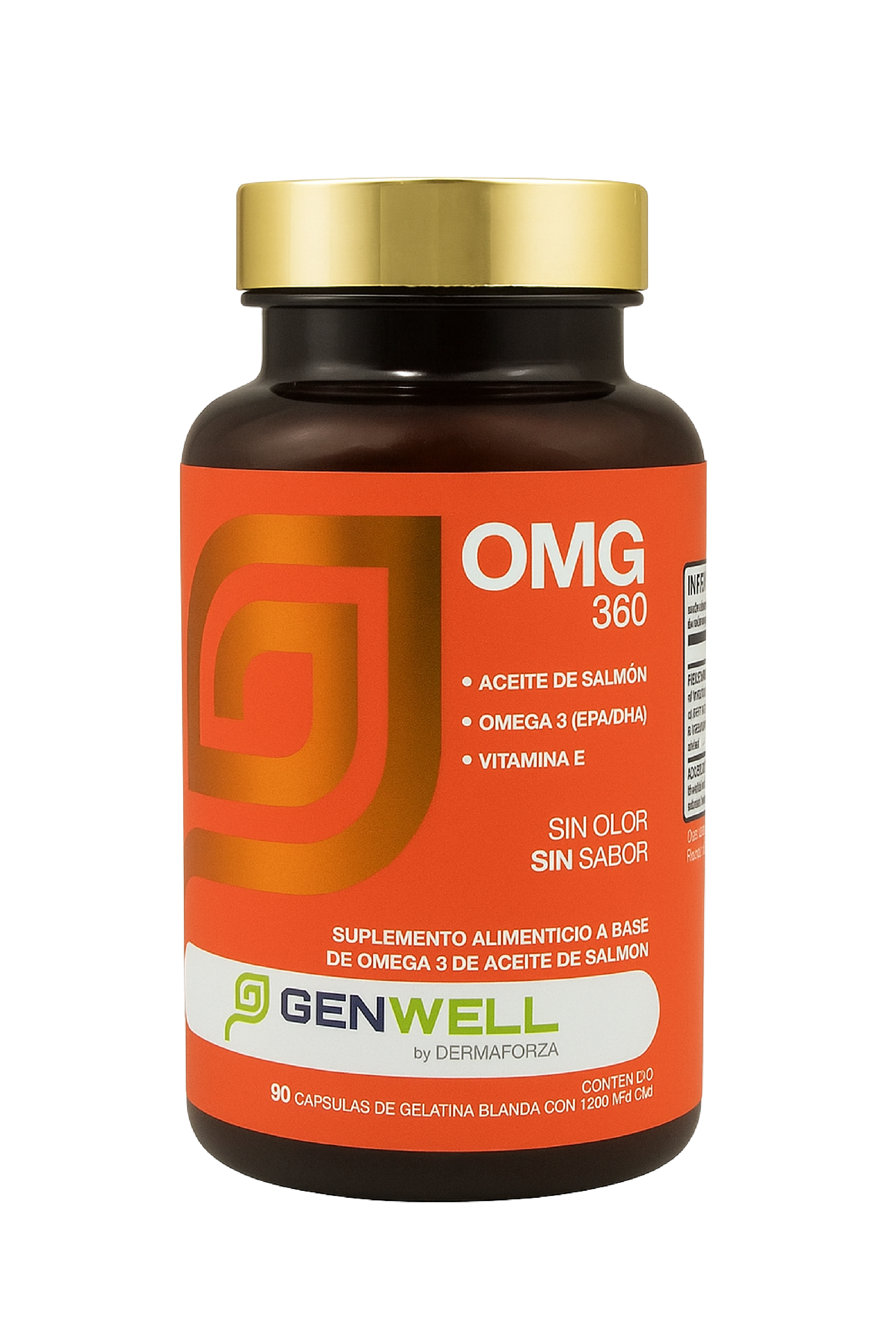 OMG 360 es un suplemento alimenticio elaborado con Aceite de Salmón concentrado de alta calidad rico en Omega 3 (EPA/DHA) y Vitamina E, ideal para promover el bienestar cardiovascular, cognitivo, salud inmunológica, salud de la piel y apoyar la salud general. Este producto está diseñado para aquellos que buscan mejorar su estilo de vida mediante el consumo de nutrientes esenciales que respaldan funciones vitales del cuerpo.